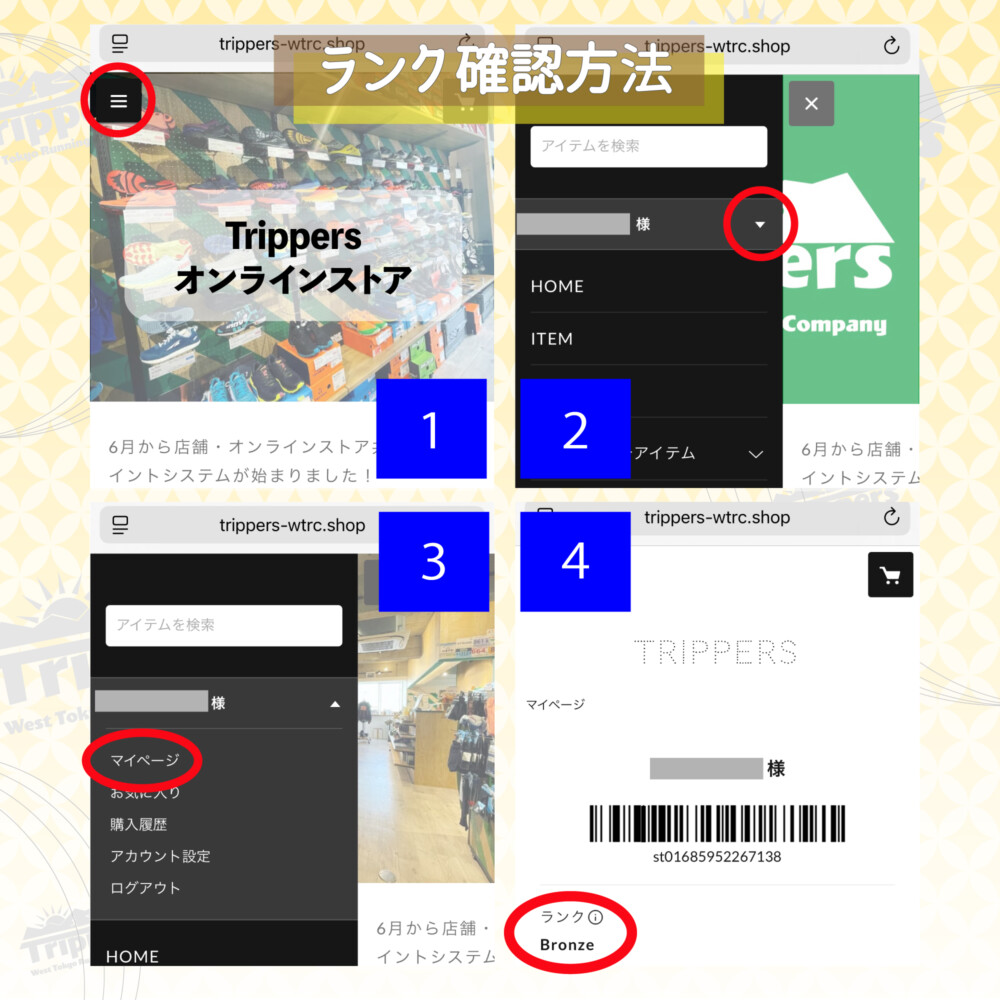会員ランクはオンラインストアのマイページでご確認いただけます。