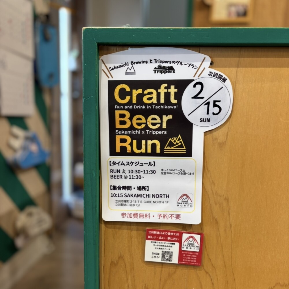 🍺2/15(日)クラフトビアラン走ってビールを飲もう! 日時や場所の詳細は画像2枚目。今月は朝開催!10:15 SAKAMICHI NORTHに集合です。
