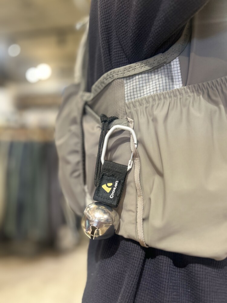 大型のカラビナでザックに取り付けやすく、不要な場面での着脱もスムーズ。