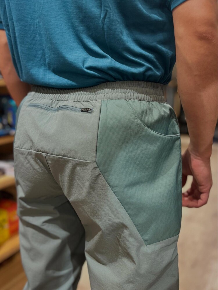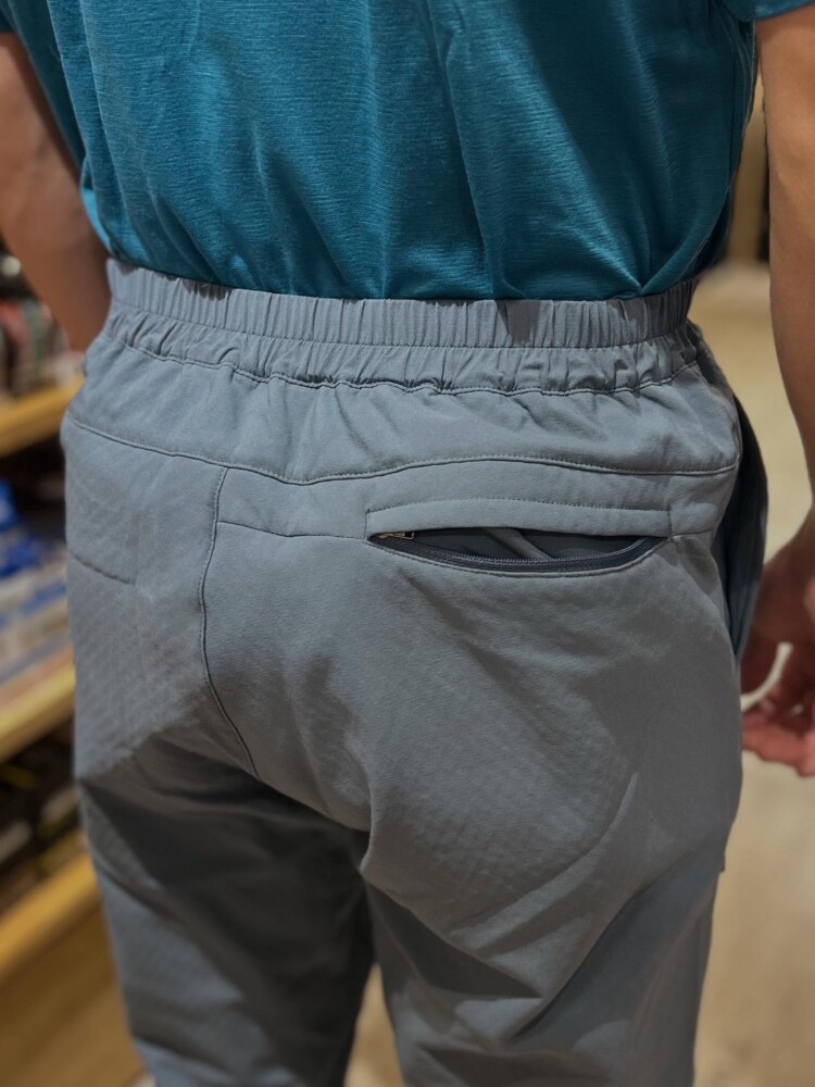 太もも部分にはベンチレーションを備え、オーバーヒートを防止。ヒップポケットはポケッタブル仕様で携帯性に優れています。