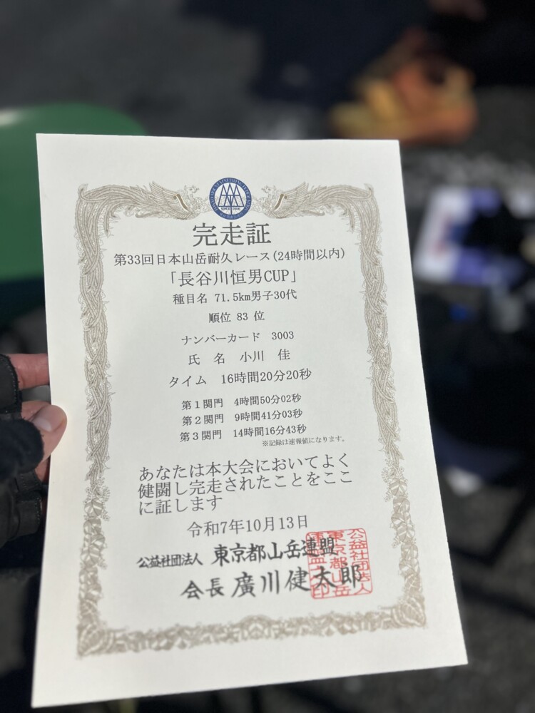 2025年10月12〜13日に、奥多摩・檜原村周辺で開催された「第33回日本山岳耐久レース(ハセツネCUP)」に出場してきた。