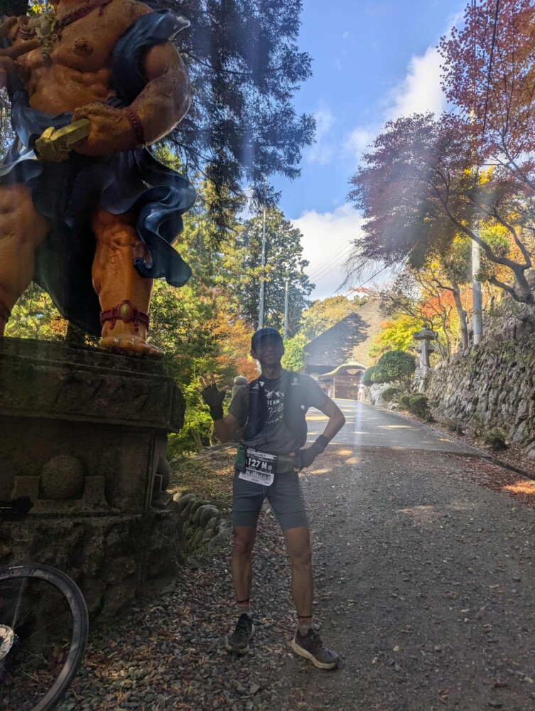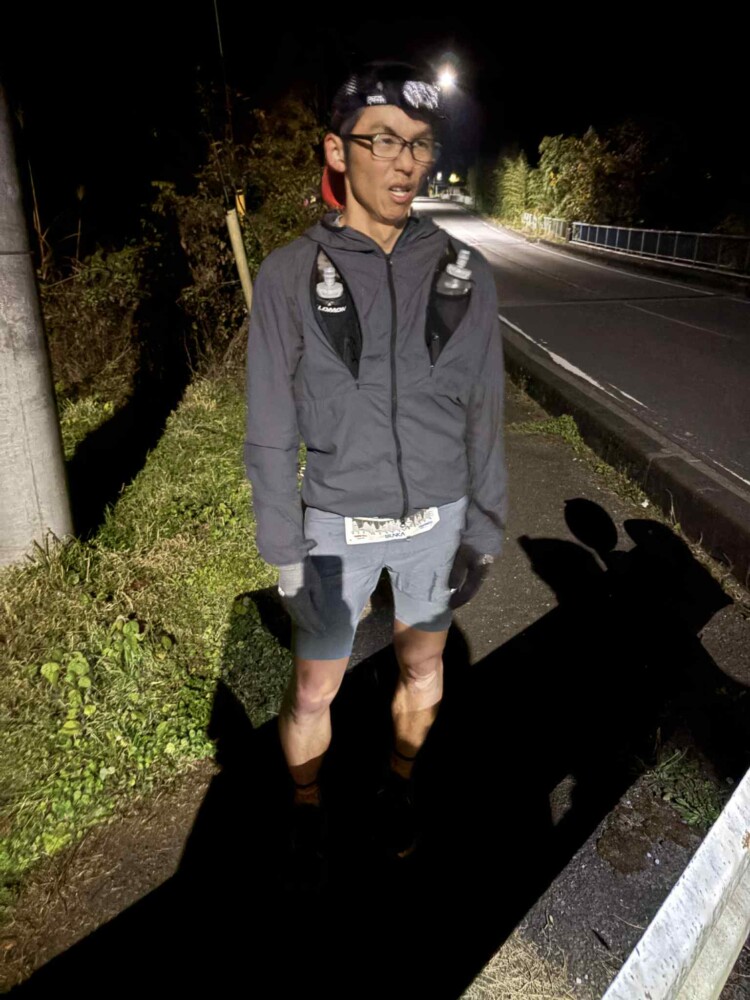 ・秩父の最低気温7度程度。山の中の方が暖かく、エイドのある街に降りてくると寒かった。面倒でもこまめにウェアリングで体温調整した方がよい。もっと寒いと思っていたが下は短パン、上はアームカバーとウインドシェルで十分だった。