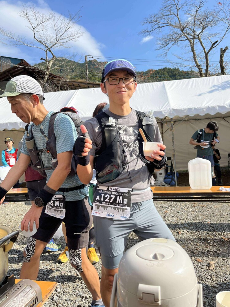 ・全エイドのメニューが素晴らしい。シチュー、スープ、カレー、牛丼、おでん等、各エイドに暖かい食事が必ずあるのがとても嬉しい。おにぎり、いなり寿司、饅頭、ポテチ、その他の食品も充実していて食欲がなくても何かしら食べたいと思うものがある。ジュース系、ホットドリンクも充実。エイドが充実しているのでデポにいれておいた後半分の固形食は半分以上置いていった。KAGA SPA、ハセツネからのFTRは快適すぎ。でもエイドで食べればいいや的な考えもでてきて補給が雑になってしまったと思う。