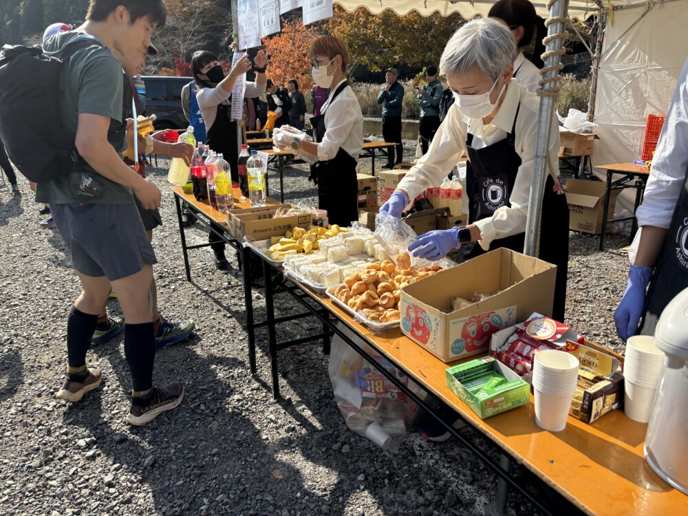 一つ山を越えたら最初のエイドに到着。良子さんのRUN塾エイド。