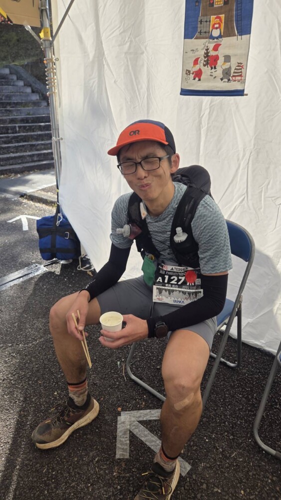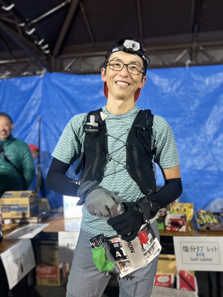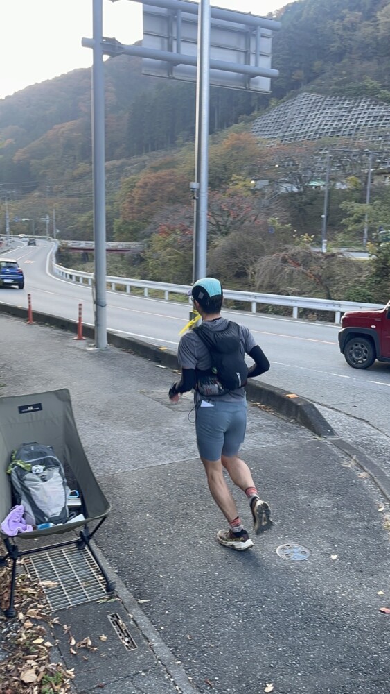 ・涼しかったので水分補給はそんなに意識していなかったが、少しのどが渇いている状態が多かったので水分補給が足りていなかった気がする。エイドでフラスクに補充はしていたが、その場でほとんど飲んでいなかったのでもっと積極的に飲めばよかった。