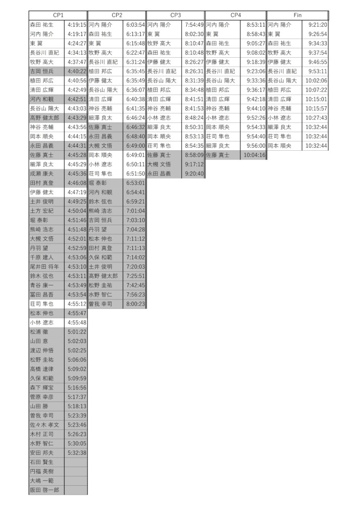 戻ってくるときに早くも出発する大槻さんや土方さんの姿が見えた。最後の区間で結構差がついたな…