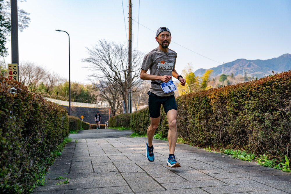 トレイルランニングの大会で初めてのトップだよ。これもしかしたらトップでゴールできるんじゃないの?